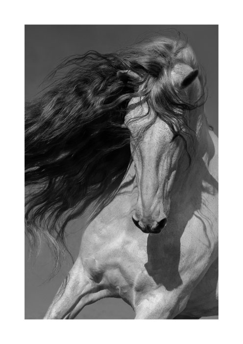 Dodaj do swojego wnętrza wyjątkowy akcent, który łączy dzikość, wolność i piękno natury. Plakat przedstawiający konia z rozwianą grzywą uchwyconego w ruchu to wyrazisty symbol siły, niezależności i harmonii. Czarno-biała stylistyka podkreśla detale i nadaje mu ponadczasowego charakteru, doskonale komponując się z nowoczesnymi oraz klasycznymi wnętrzami.