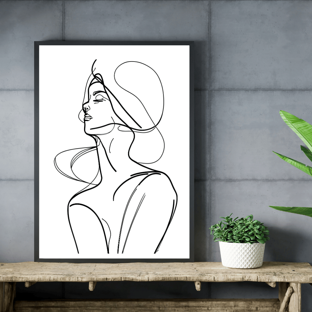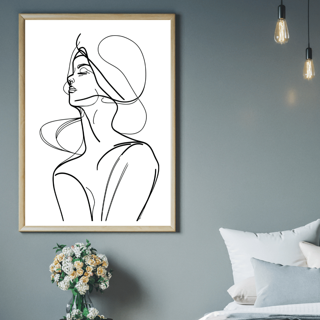 Plakat Soft Motion w stylu line art to ponadczasowa dekoracja ścienna inspirowana delikatnością, ruchem i naturalną elegancją kobiecej formy. Płynne linie tworzą artystyczną kompozycję, która emanuje spokojem, lekkością i subtelną zmysłowością, doskonale wpisując się w nowoczesne trendy wnętrzarskie.