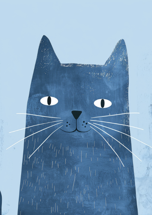 Ten plakat wyróżnia się minimalistyczną ilustracją i łagodnym charakterem. Kot ma sympatyczny wyraz pyska i miękkie kształty, które budzą pozytywne skojarzenia i poczucie bezpieczeństwa. Niebieska kolorystyka działa uspokajająco, dzięki czemu plakat świetnie sprawdzi się także w pokojach najmłodszych dzieci.