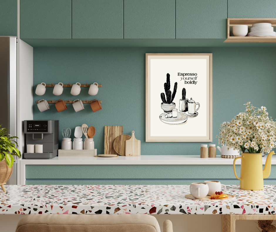 Plakat Espresso Yourself Boldly – stylowy akcent do kuchni i kącika kawowego