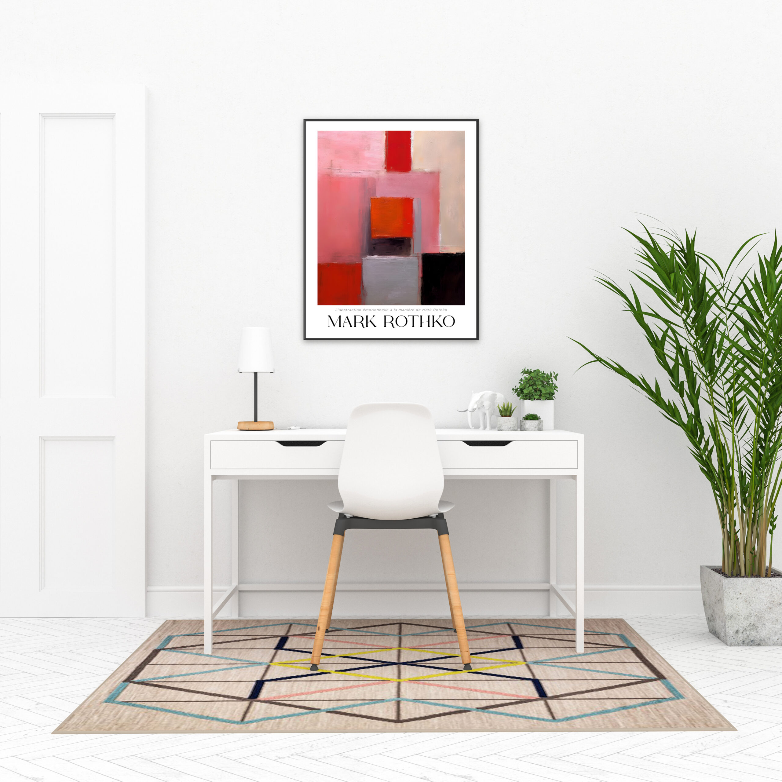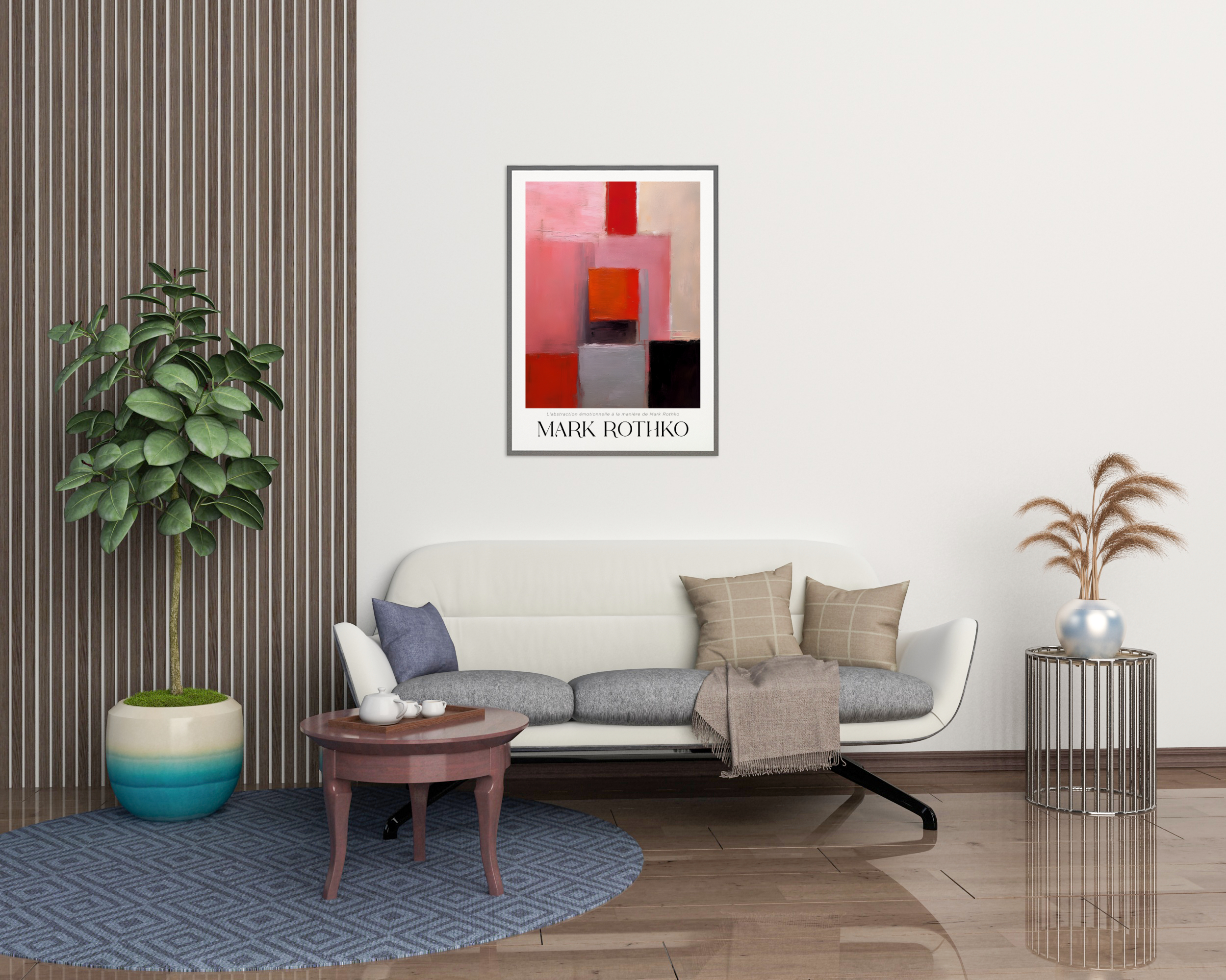 Plakat inspirowany Markiem Rothko to wyjątkowa dekoracja ścienna dla miłośników sztuki nowoczesnej. Zestawienie ciepłych odcieni czerwieni, różu i czerni buduje kompozycję pełną głębi i ekspresji. Inspiracja stylem Rothko sprawia, że plakat wywołuje emocje i nadaje wnętrzu niepowtarzalny nastrój. Idealnie sprawdzi się w salonie, sypialni, biurze lub domowej galerii.