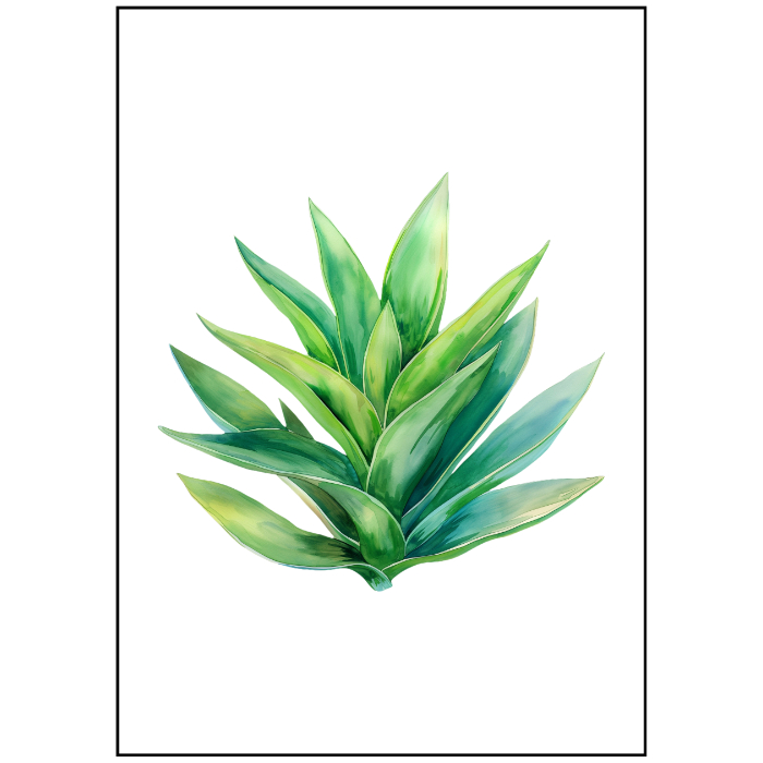 Plakat utrzymany jest w stonowanej kolorystyce – zieleń liści sukulentu w odcieniach szmaragdu, mięty i oliwki na białym tle tworzy kompozycję świeżą i harmonijną. Idealny do wnętrz z naturalnymi materiałami, drewnem i beżami.