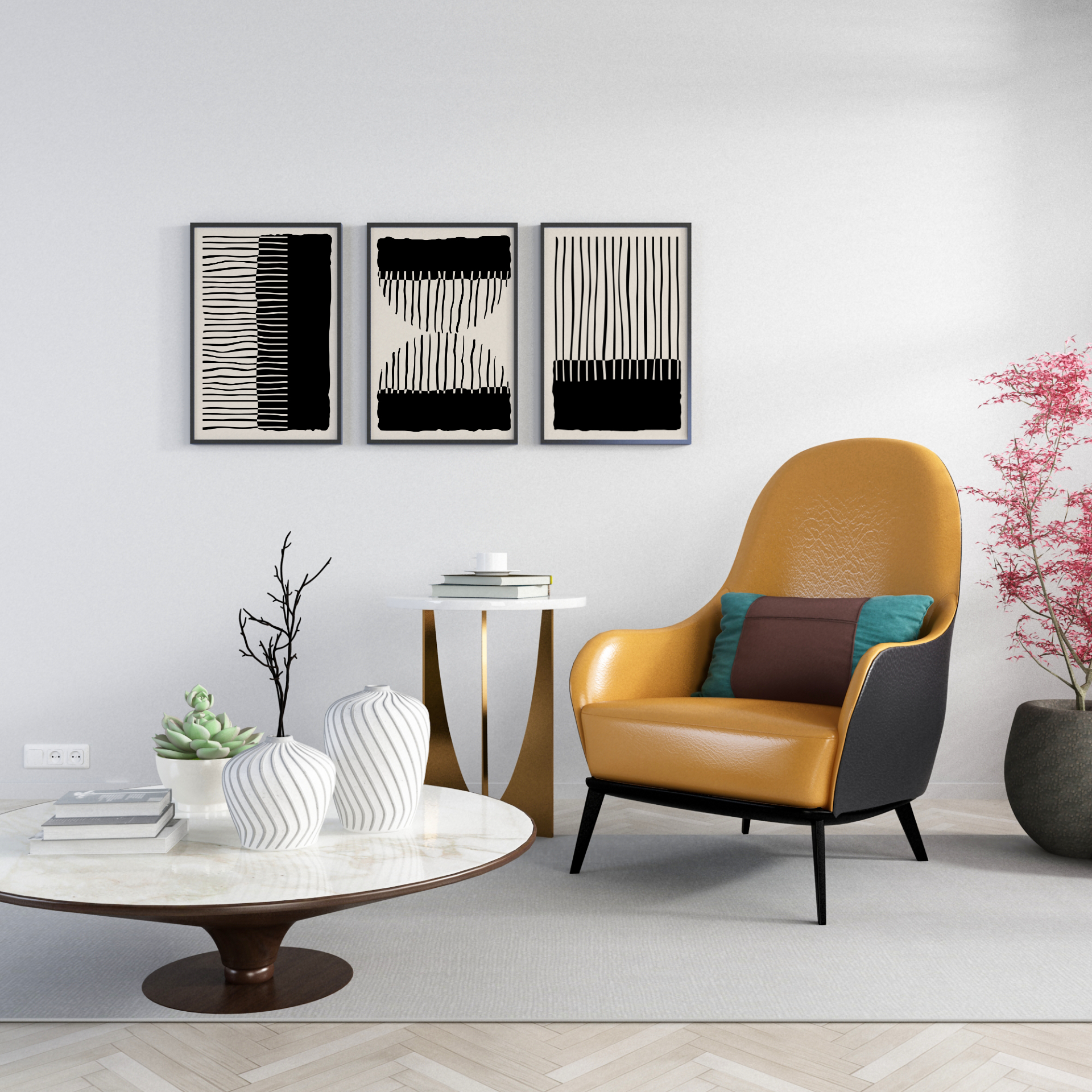 Ten zestaw plakatów abstrakcyjnych świetnie prezentuje się nad sofą w salonie, jako akcent w biurowym home office, a także w minimalistycznym korytarzu. W zestawieniu z drewnem, betonem lub metalem podkreśli surowy, nowoczesny klimat.