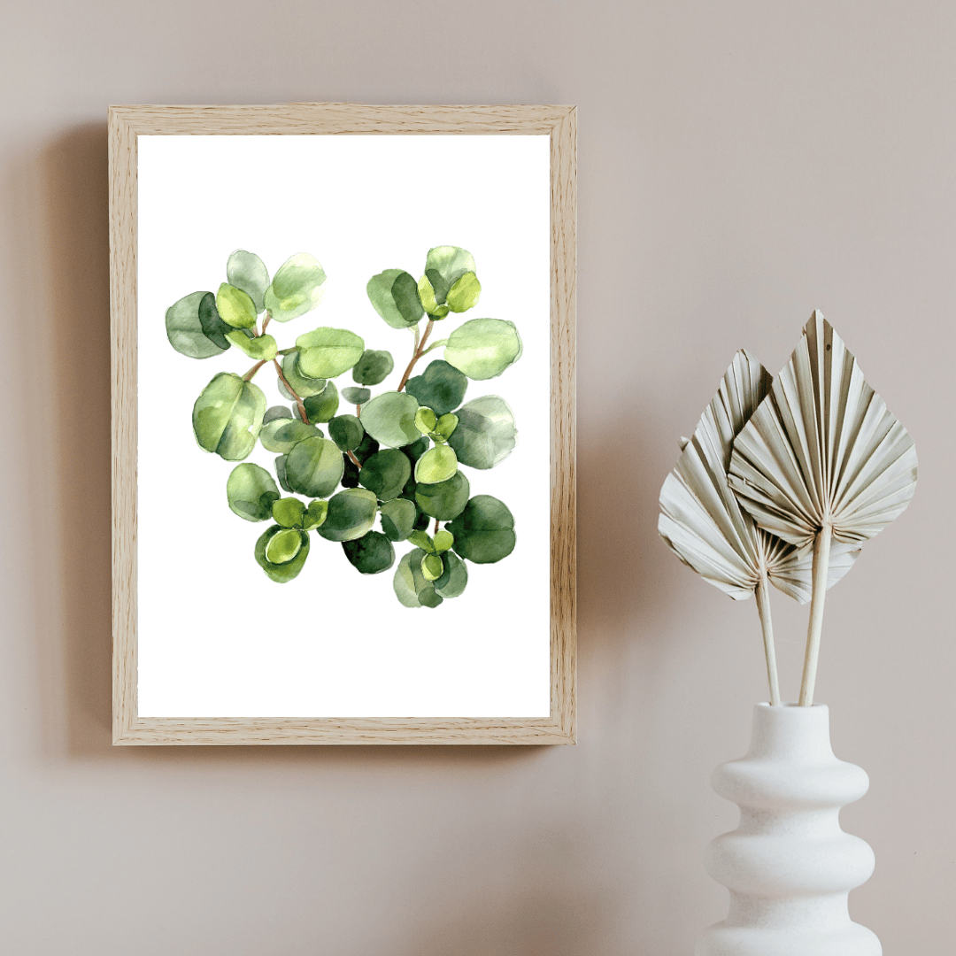 Wprowadź do swojego wnętrza odrobinę spokoju i natury dzięki eleganckiemu plakatowi botanicznemu „Zielone Liście”. Delikatna akwarelowa ilustracja przedstawiająca roślinę o okrągłych, soczyście zielonych liściach to doskonały wybór dla miłośników minimalizmu, stylu boho, japandi oraz urban jungle.