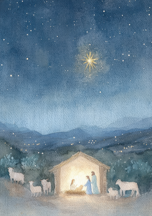 Plakat Światło Szopki – nastrojowa akwarela pełna świątecznej magii