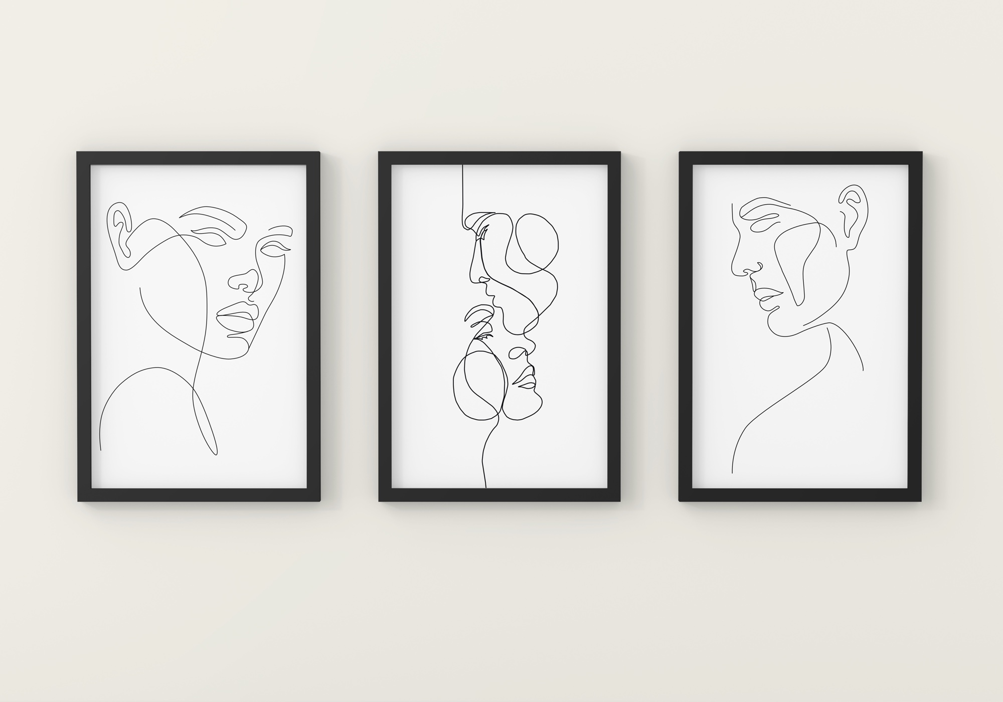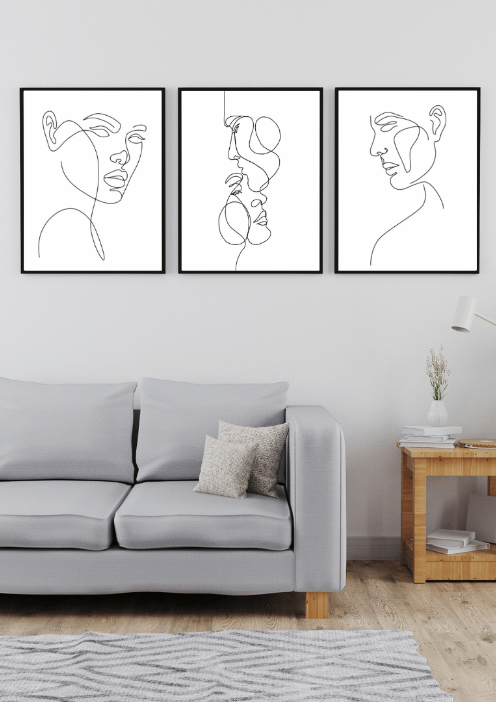 Zestaw plakatów Line Art – Trzy twarze w minimalistycznym ujęciu