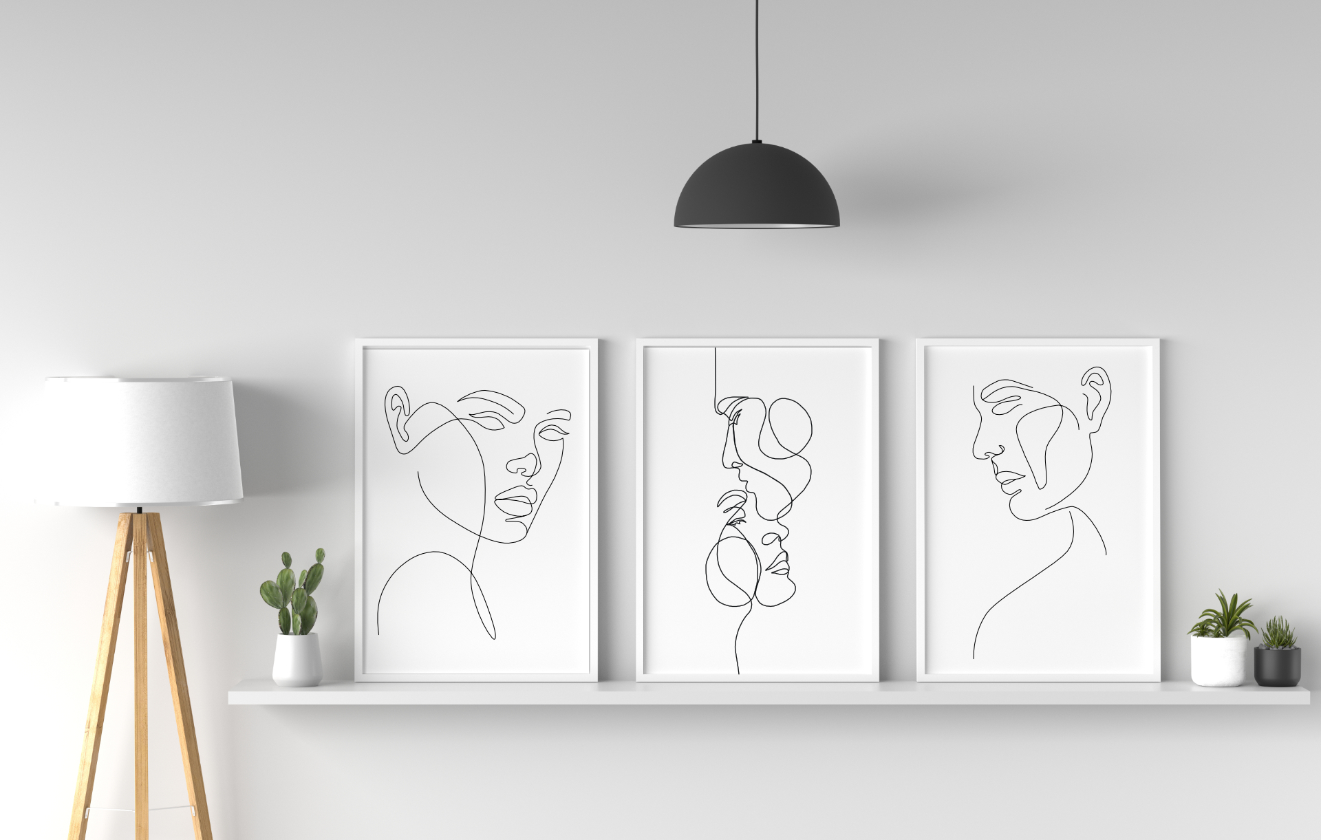 Projekt stawia na minimalizm i kontur. Cienka, czarna linia na białym tle tworzy wyraźny kontrast, dzięki czemu obrazy są lekkie, a zarazem wyraziste. Idealnie wpisują się w trendy scandi, japandi, boho i loft.