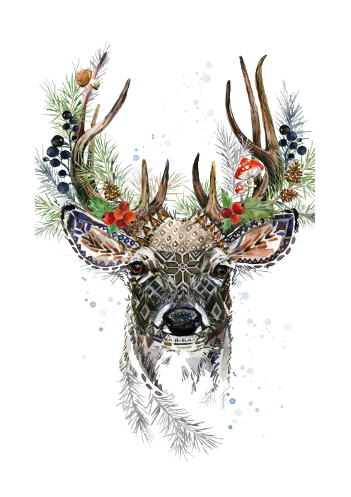 Plakat Leśny Jeleń to doskonała propozycja dla miłośników przyrody i unikatowego designu. Artystycznie ukazany jeleń z majestatycznym porożem ozdobionym leśnymi roślinami przyciąga wzrok i tworzy niepowtarzalny klimat – zarówno w salonie, sypialni, jak i domowym biurze..
